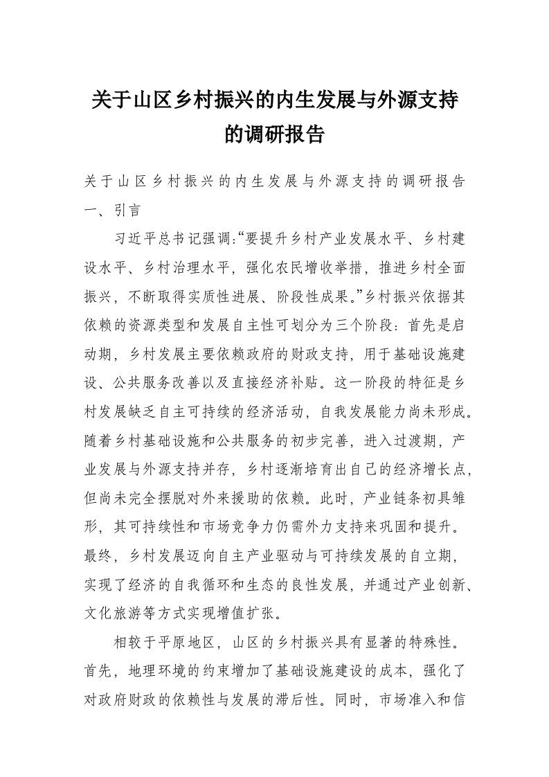 关于山区乡村振兴的内生发展与外源支持的调研报告