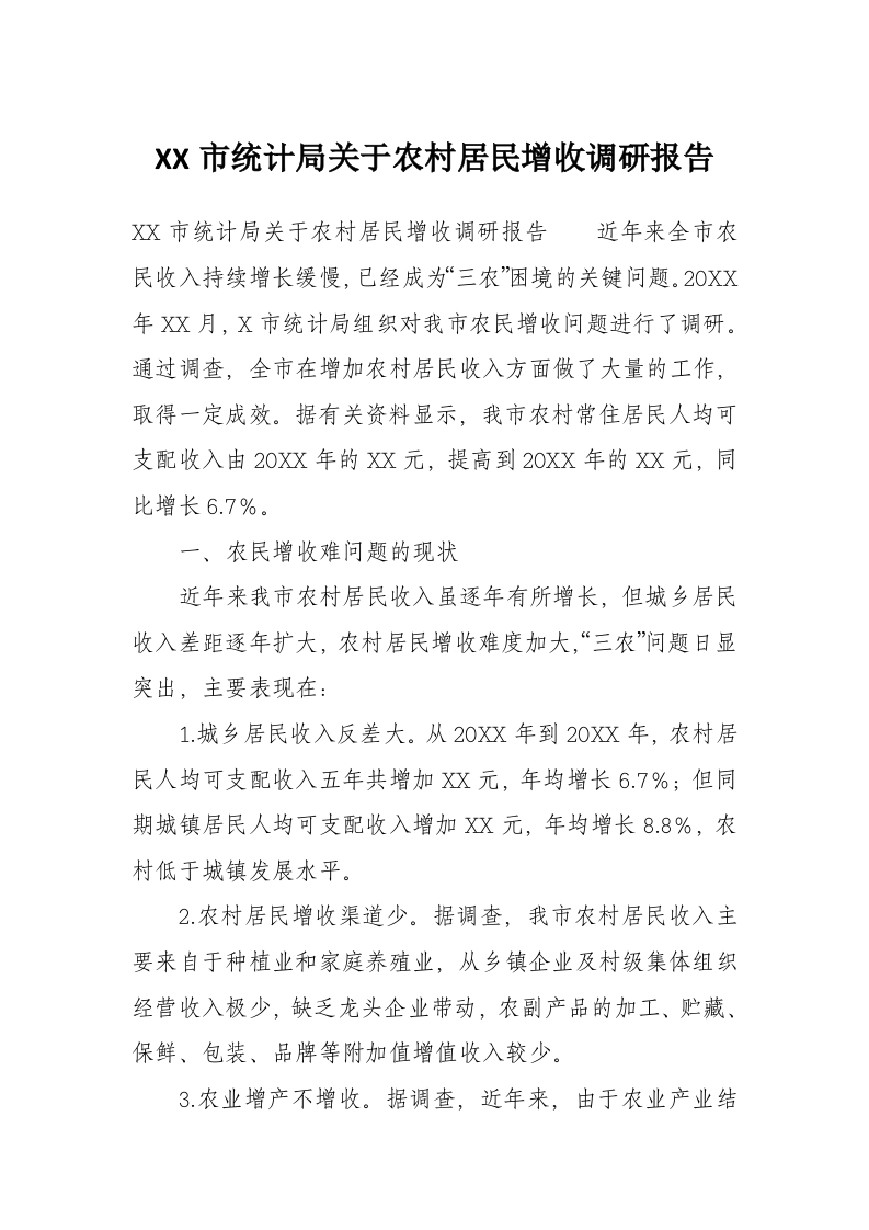 首页材料汇编XX市统计局关于农村居民增收调研报告