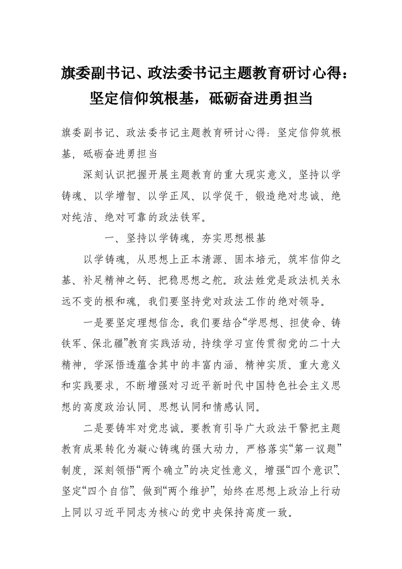 旗委副书记、政法委书记主题教育研讨心得:坚定信仰筑根基,砥砺奋进勇担当