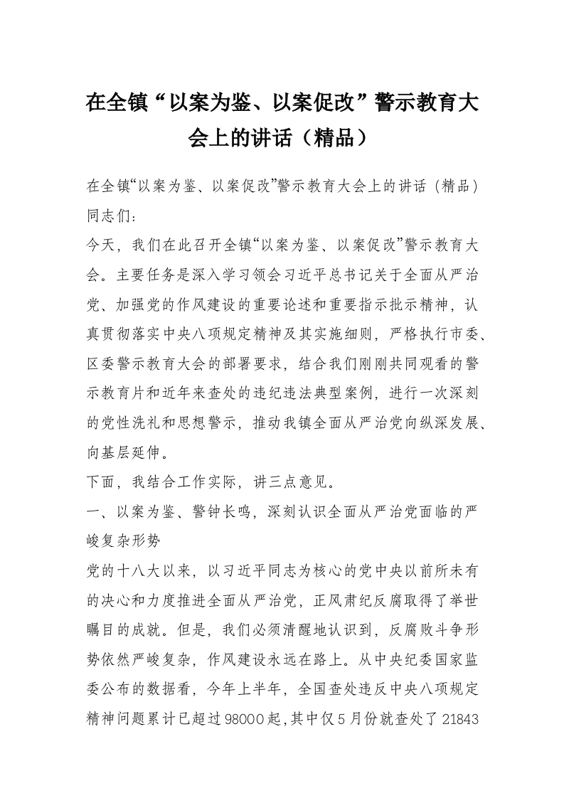 在全镇“以案为鉴、以案促改”警示教育大会上的讲话(精品)