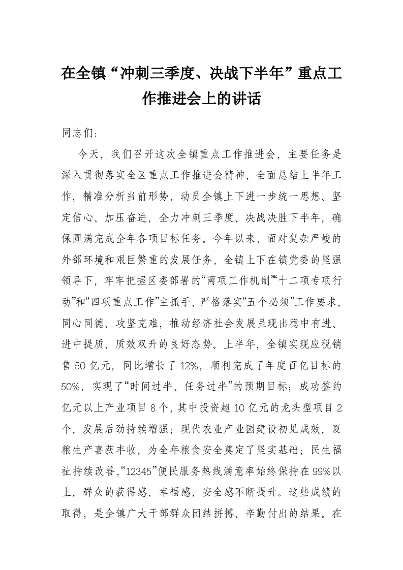 在全镇“冲刺三季度、决战下半年”重点工作推进会上的讲话