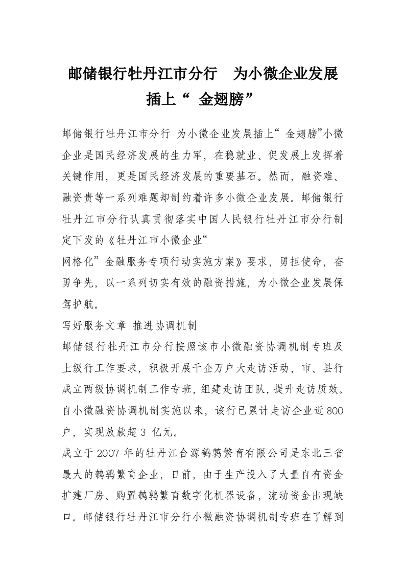 首页讲课讲稿邮储银行牡丹江市分行 为小微企业发展插上“ 金翅膀”