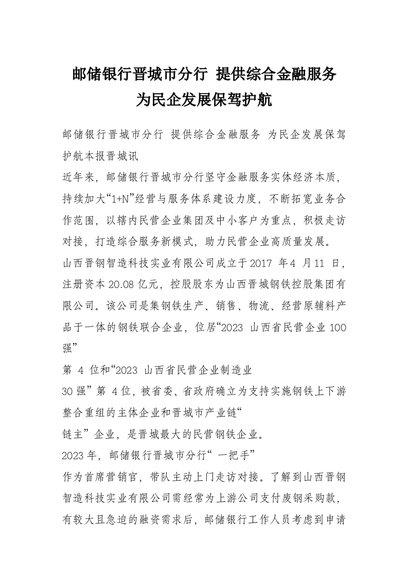 首页讲课讲稿邮储银行晋城市分行 提供综合金融服务 为民企发展保驾护航