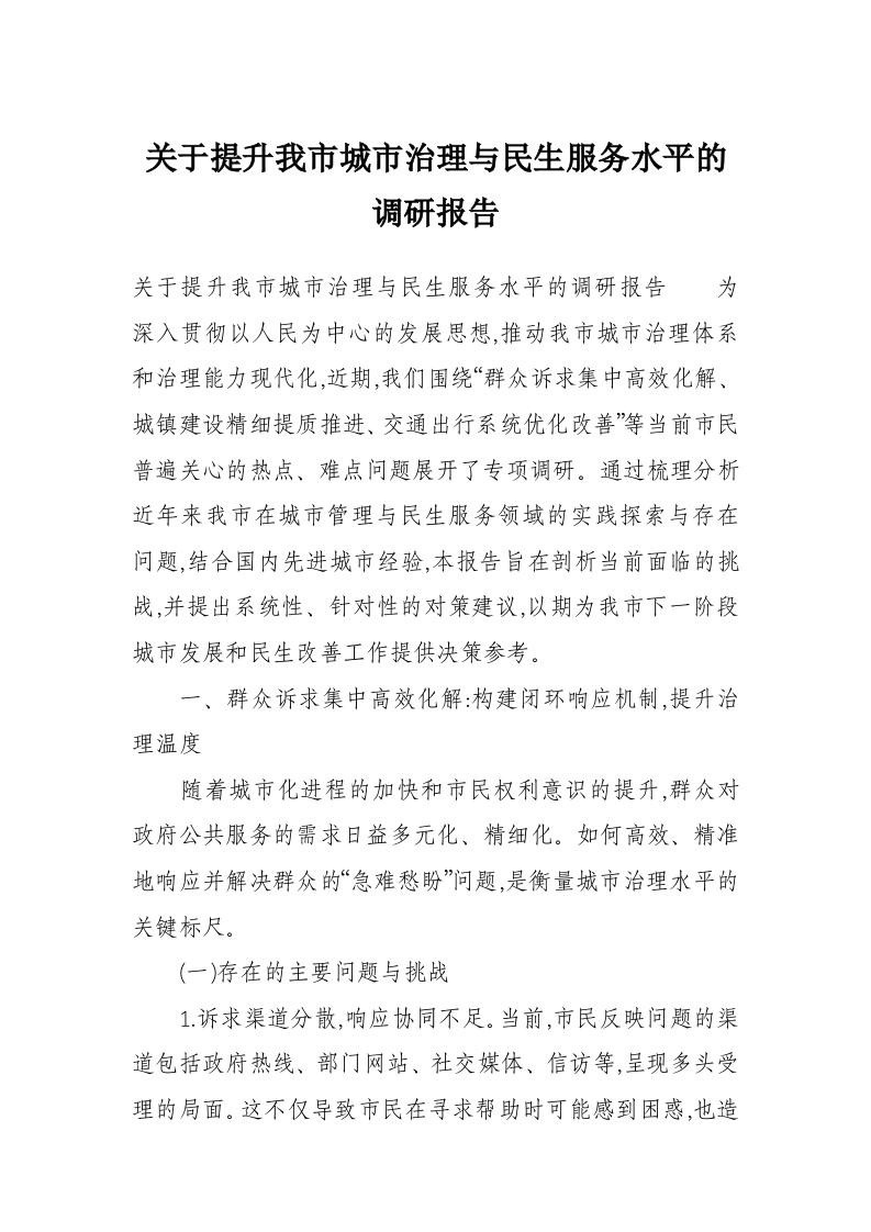 首页材料汇编关于提升我市城市治理与民生服务水平的调研报告