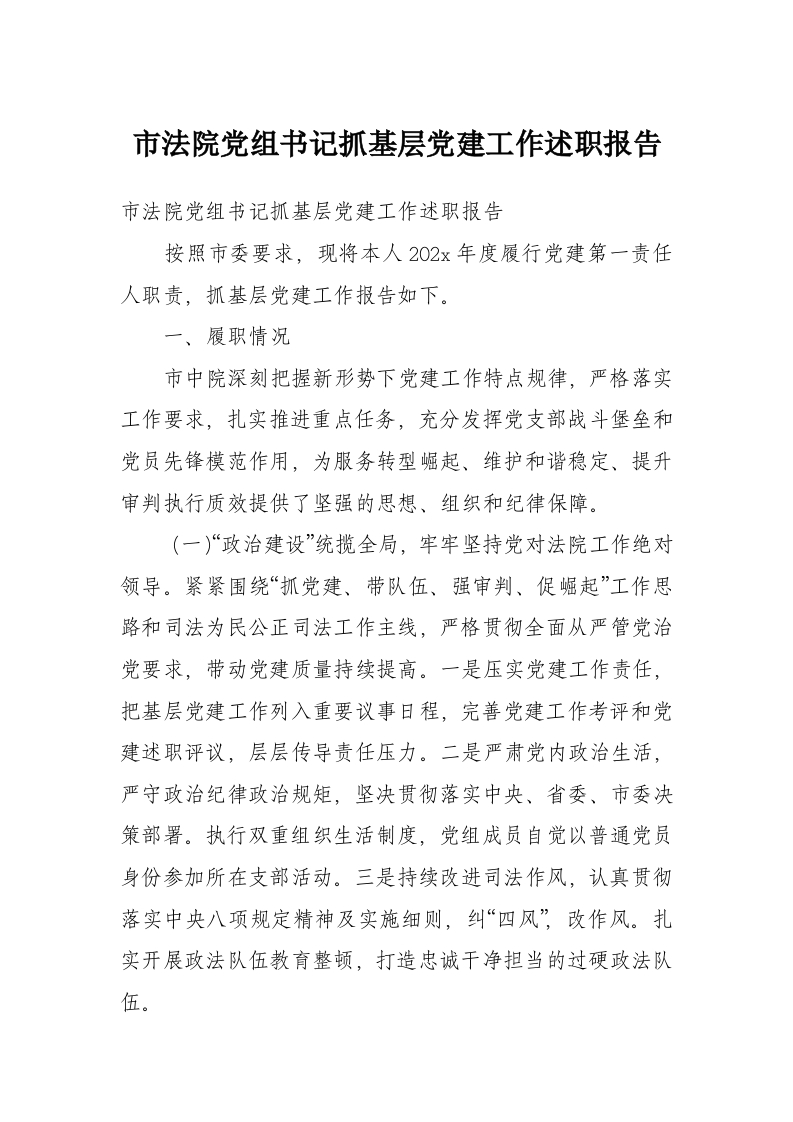 首页写作素材市法院党组书记抓基层党建工作述职报告