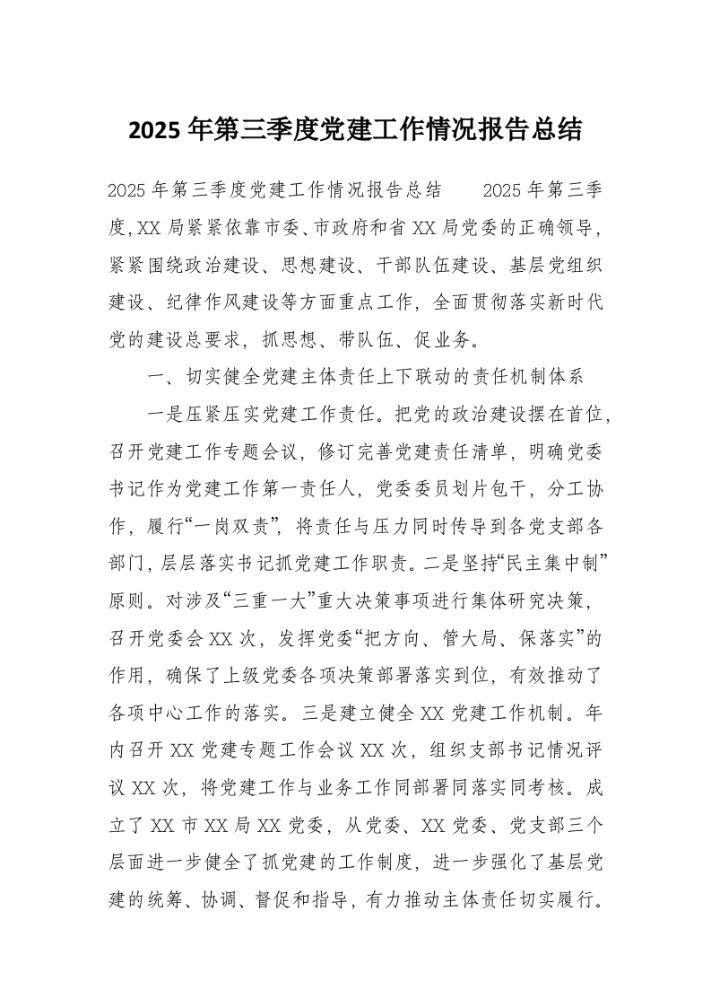 首页材料汇编2025年第三季度党建工作情况报告总结