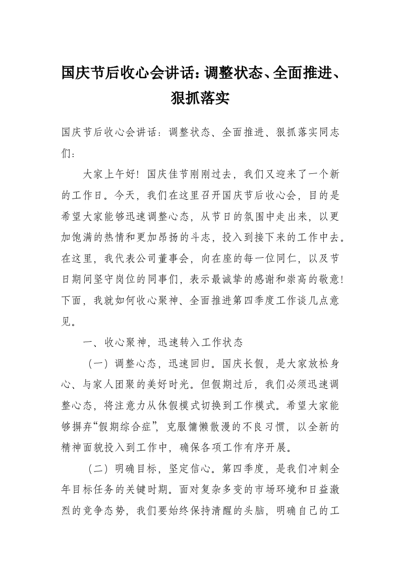 国庆节后收心会讲话:调整状态、全面推进、狠抓落实