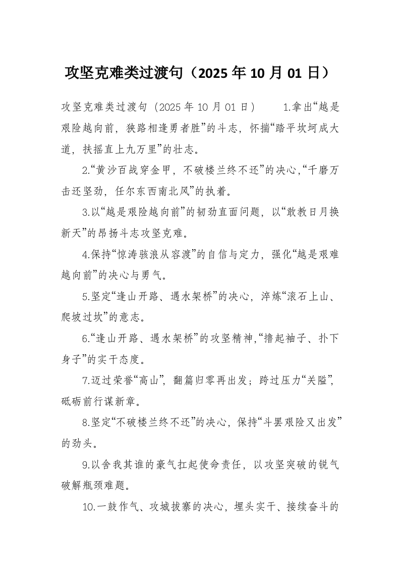 攻坚克难类过渡句(2025年10月01日)