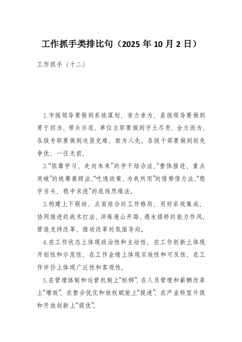 首页每日金句工作抓手类排比句(2025年10月2日)