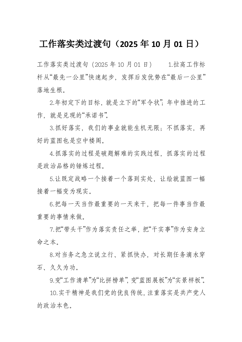 首页每日金句工作落实类过渡句(2025年10月01日)