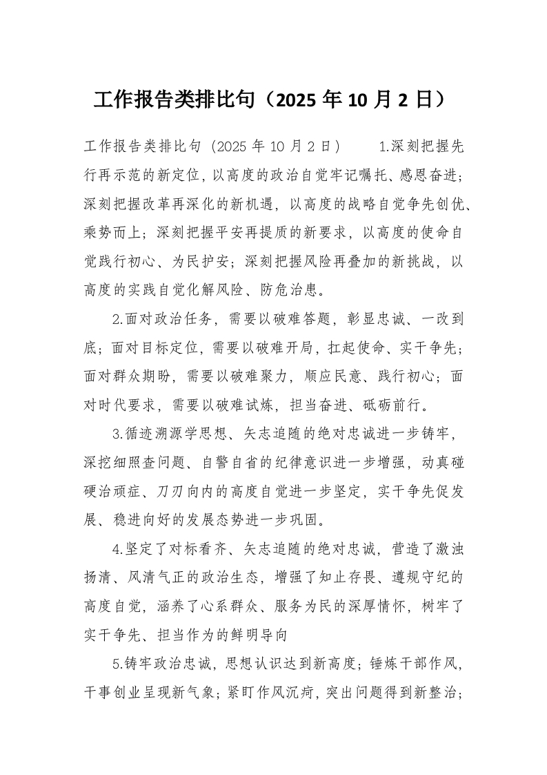工作报告类排比句(2025年10月2日)