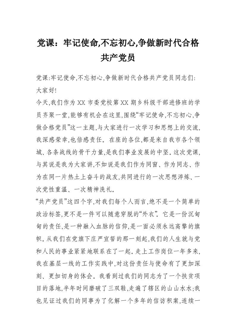 党课:牢记使命,不忘初心,争做新时代合格***员