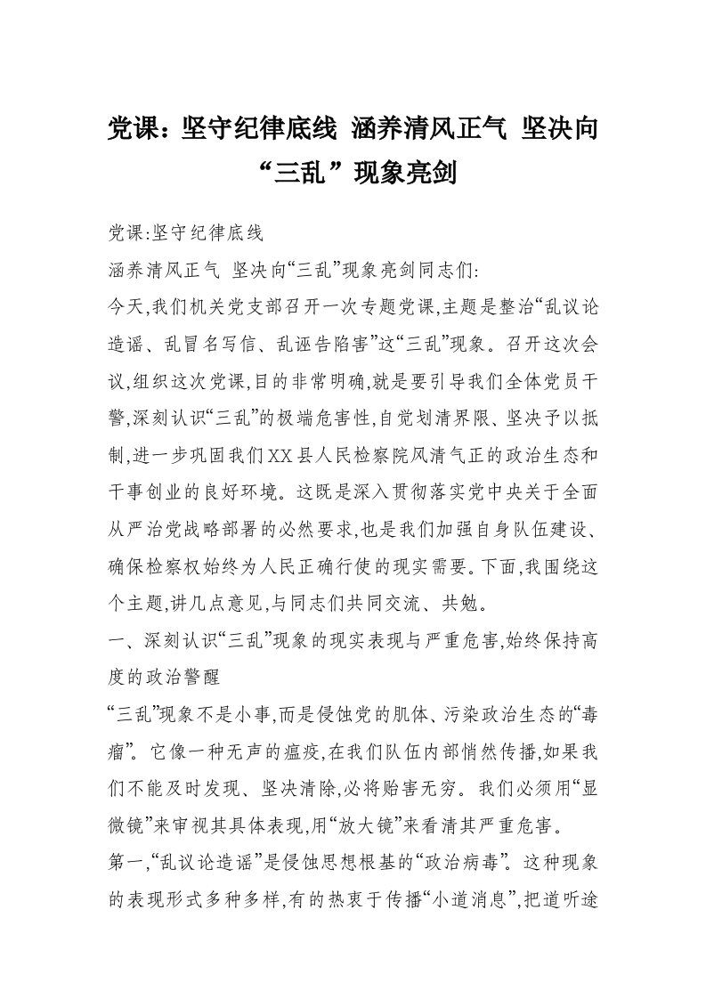 党课:坚守纪律底线 涵养清风正气 坚决向“三乱”现象亮剑