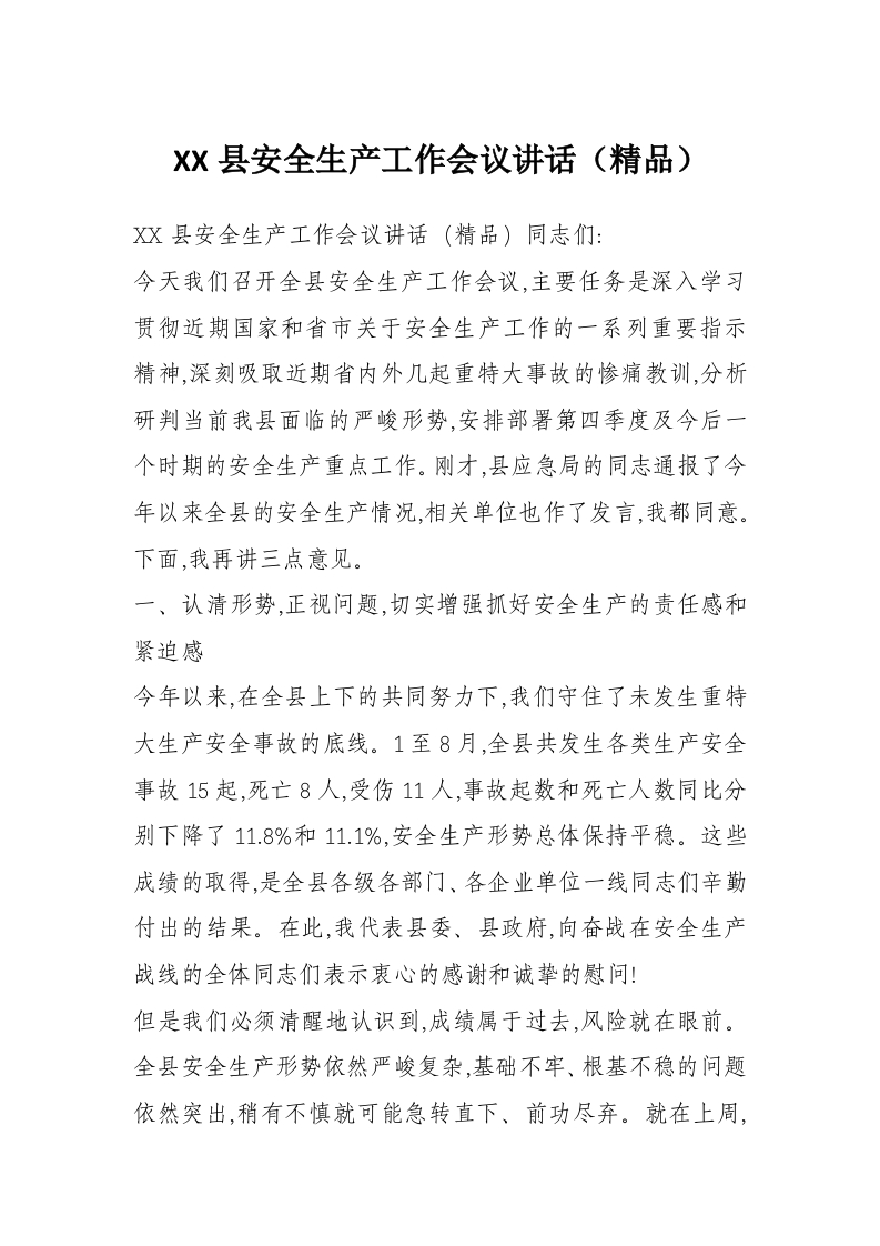 首页学习提升XX县安全生产工作会议讲话(精品)