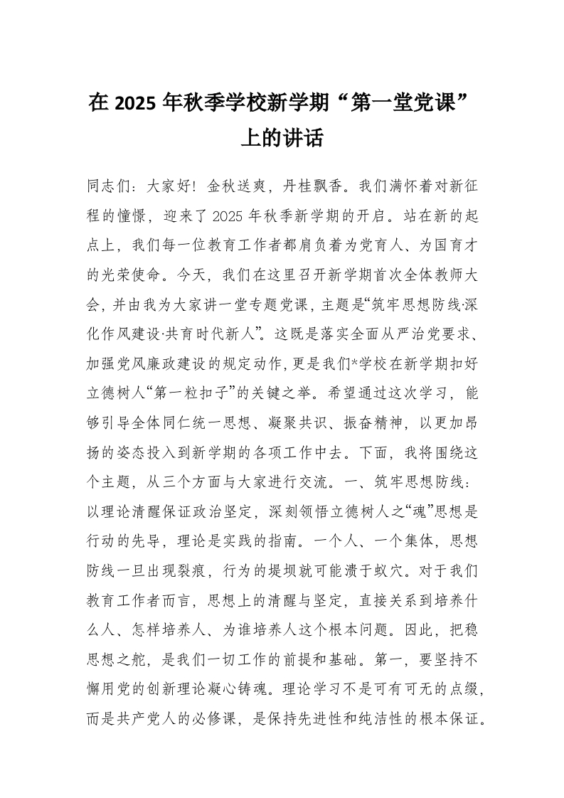 首页材料汇编在2025年秋季学校新学期“第一堂党课”上的讲话