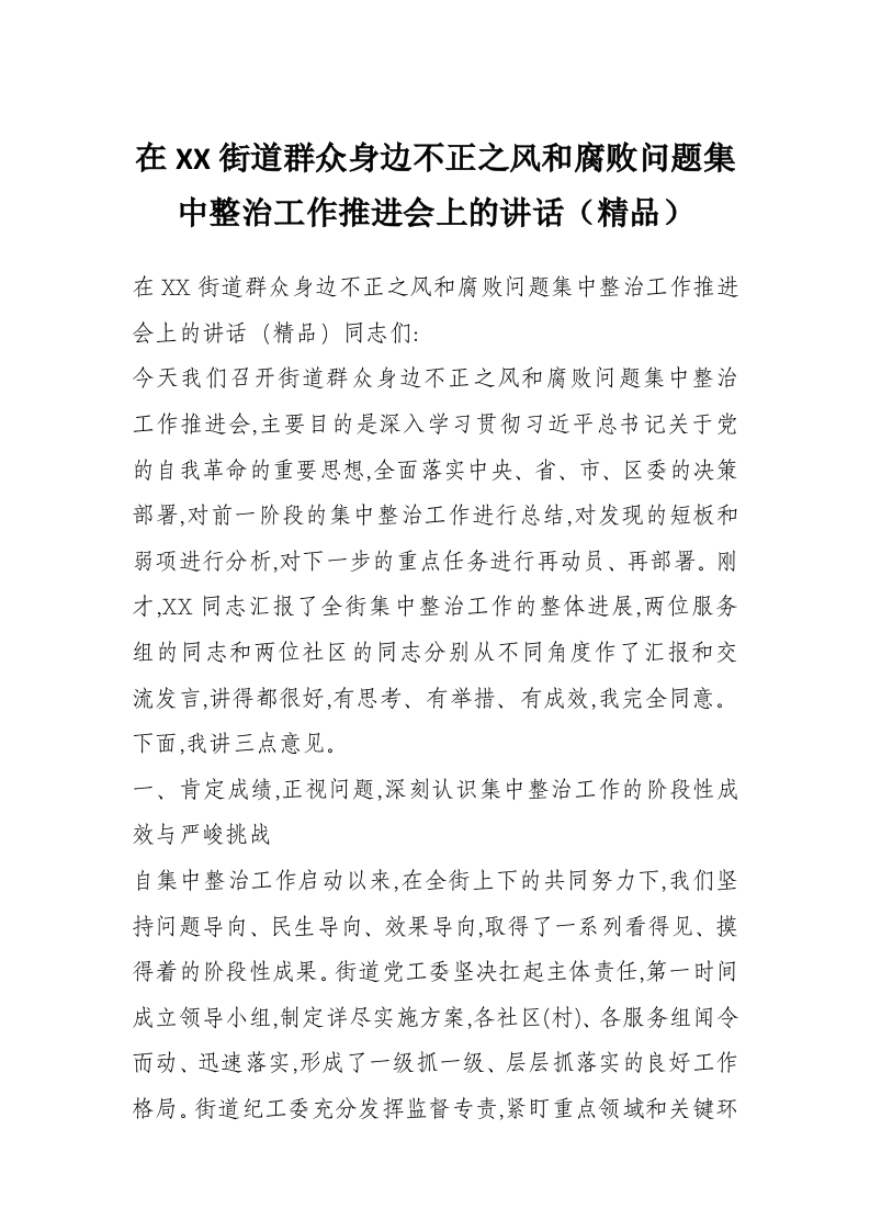 在XX街道群众身边不正之风和腐败问题集中整治工作推进会上的讲话(精品)