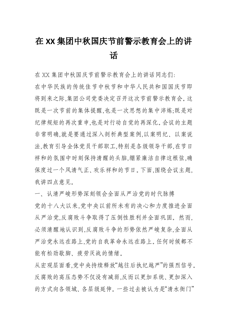 首页精选范文在XX集团中秋国庆节前警示教育会上的讲话