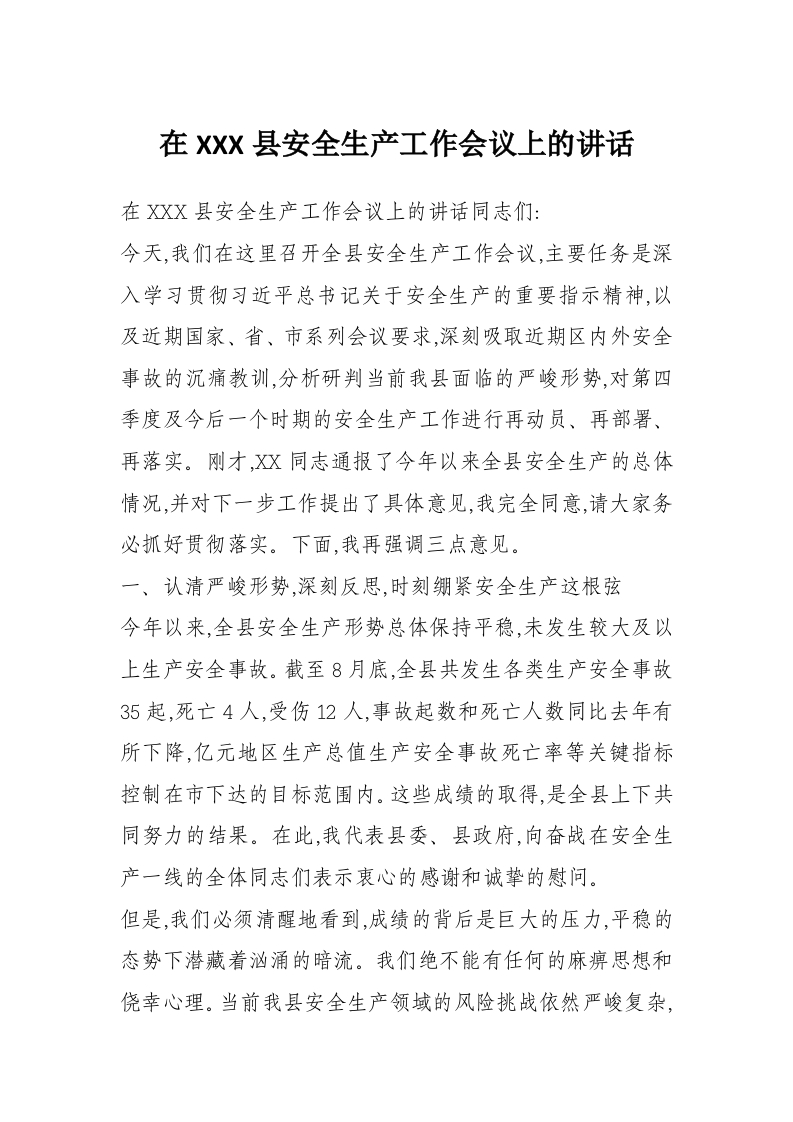 首页精选范文在XXX县安全生产工作会议上的讲话