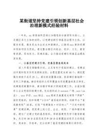 引领创新基层社会治理新模式经验材料