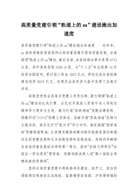 引领“轨道上的xx”建设跑出加速度