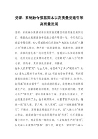 党课:系统融合强基固本以高质量