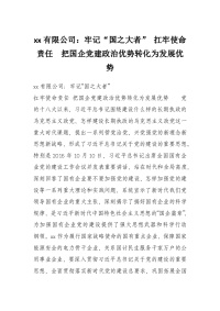 xx有限公司:牢记“国之大者” 扛牢使命责任 把国企